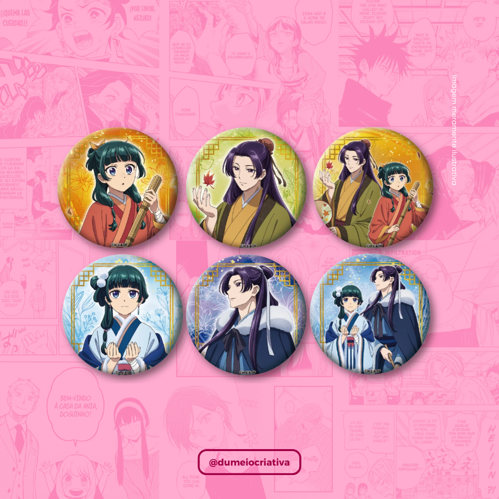 Kit com 6 Bottons Diários de uma Apotecária - (3,5cm) Broche Alfinete
