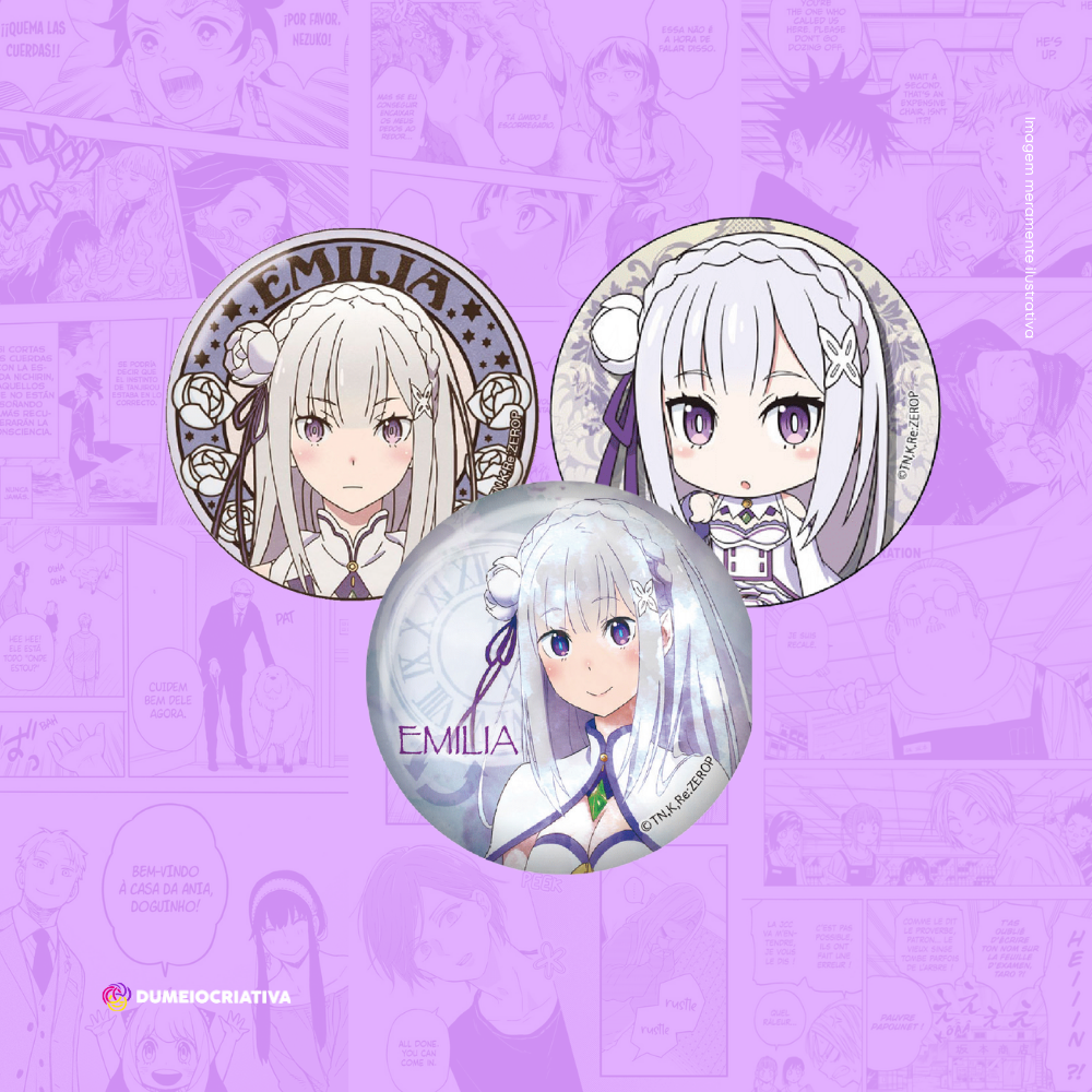 Kit com 3 Bottons Emilia Re:Zero - (3,5cm) Broche Alfinete