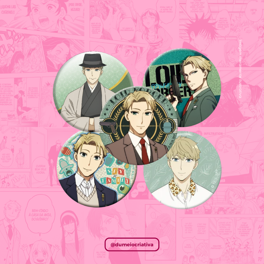 Kit com 5 Bottons Loid Forger - Anime Spy x Family - (3,5cm) Broche Alfinete